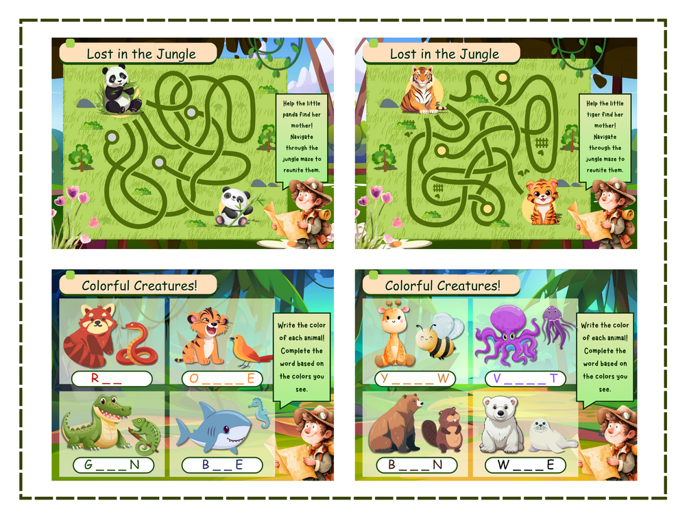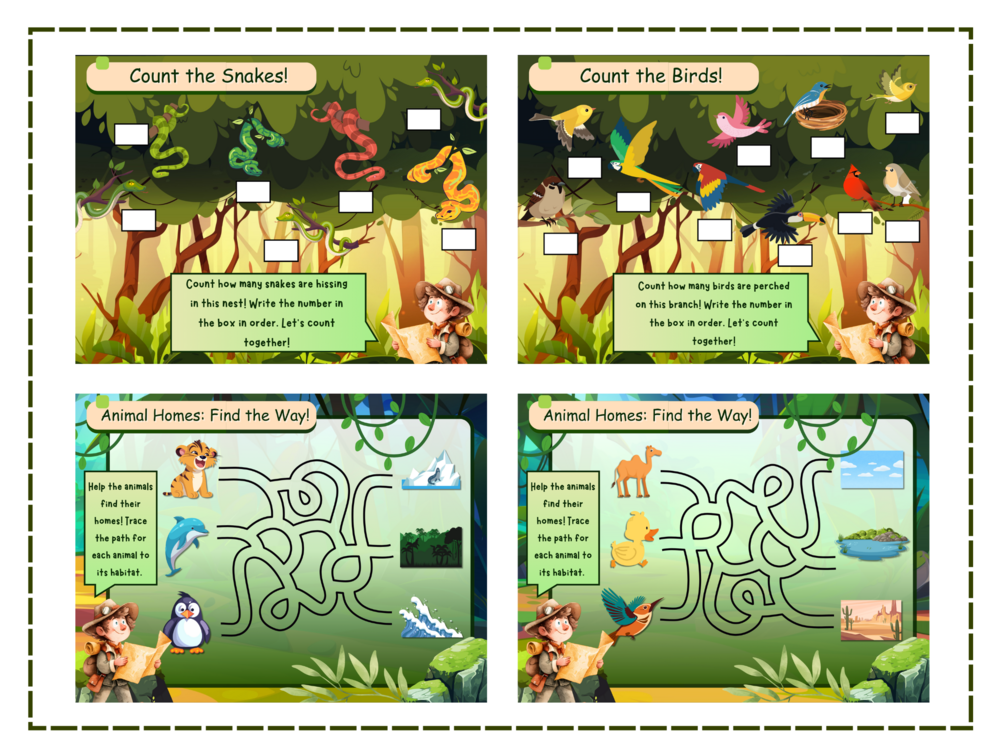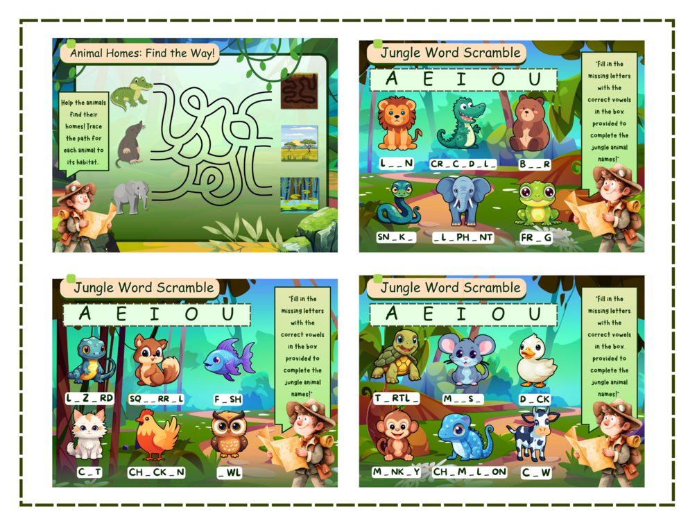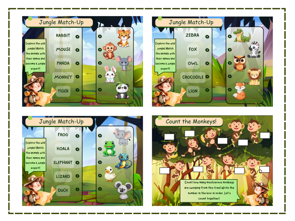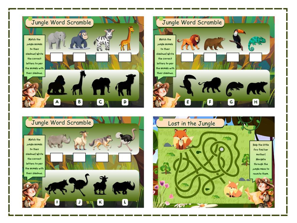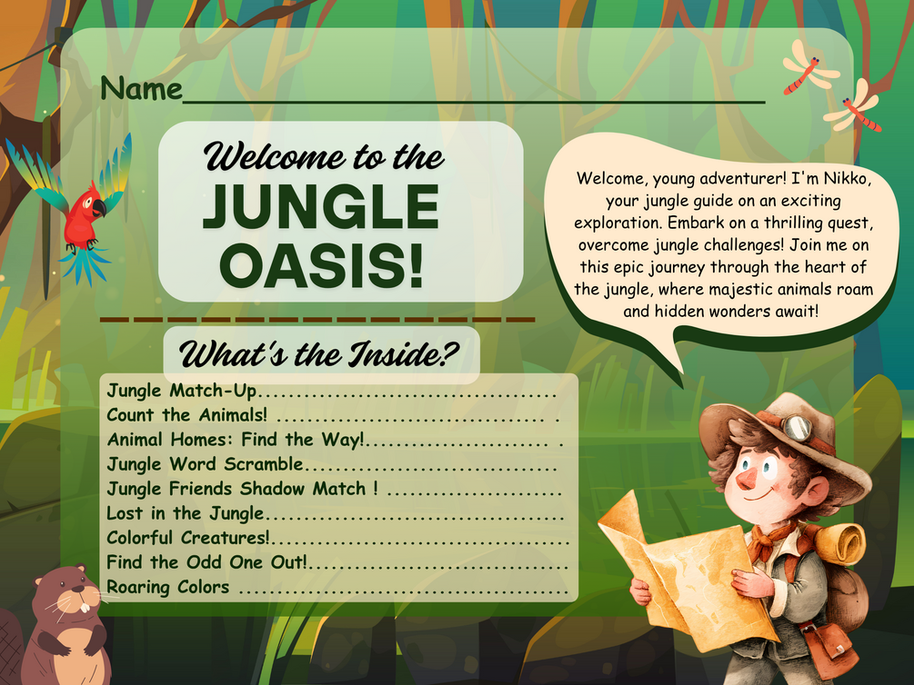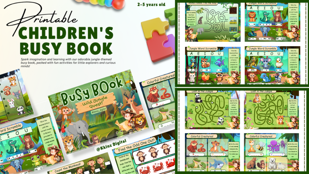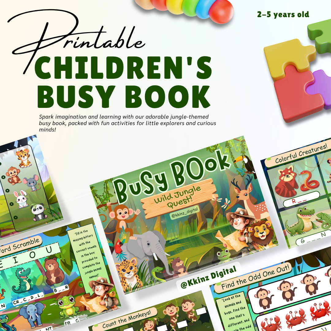 Explore the wild side of learning with our Jungle Theme Busy Book / Activity Book, packed with over 30 pages of fun and adventure! Perfect for little explorers, this printable book is bursting with exciting activities, puzzles, and games to spark imagination and curiosity. Ideal for Toddlers & Preschoolers!