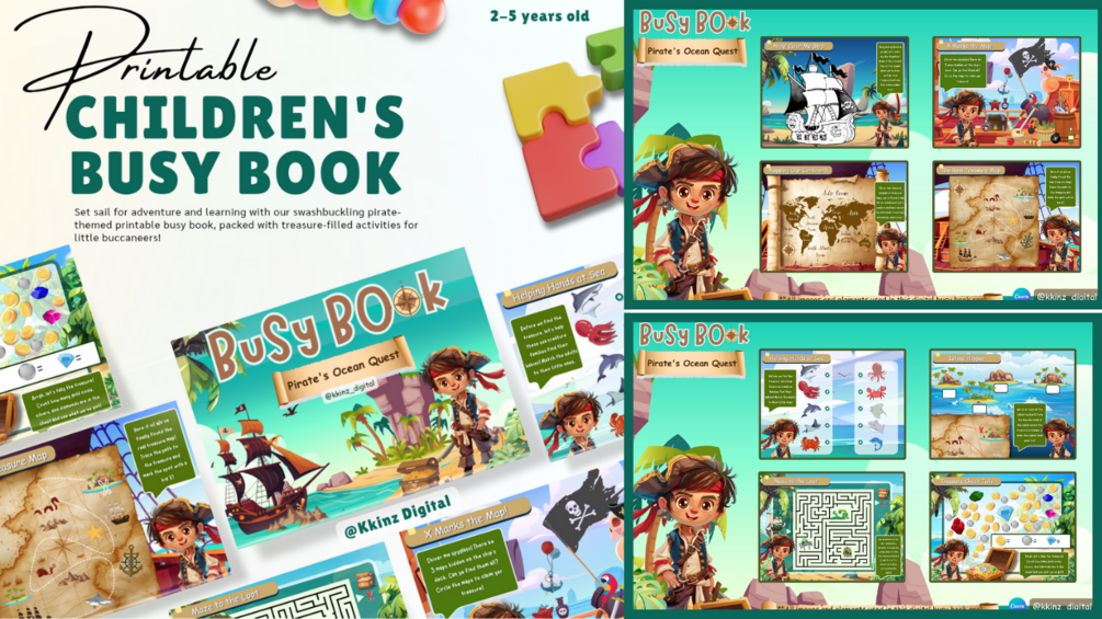 Set sail for adventure and learning with our swashbuckling pirate-themed printable busy book, up to 12 pages packed with treasure-filled activities for little buccaneers! Ideal for Toddlers & Preschoolers!