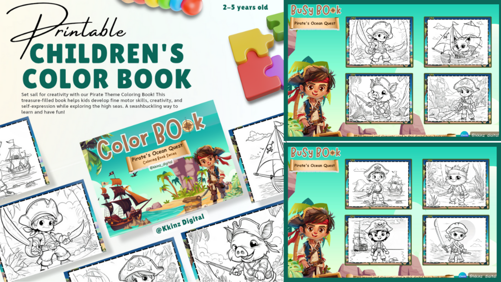 Set sail for creativity with our Pirate Theme Coloring Book! This treasure-filled book helps kids develop fine motor skills, creativity, and self-expression while exploring the high seas. A swashbuckling way to learn and have fun! up to 18 pages packed with treasure-filled activities for little buccaneers! Ideal for Toddlers & Preschoolers!